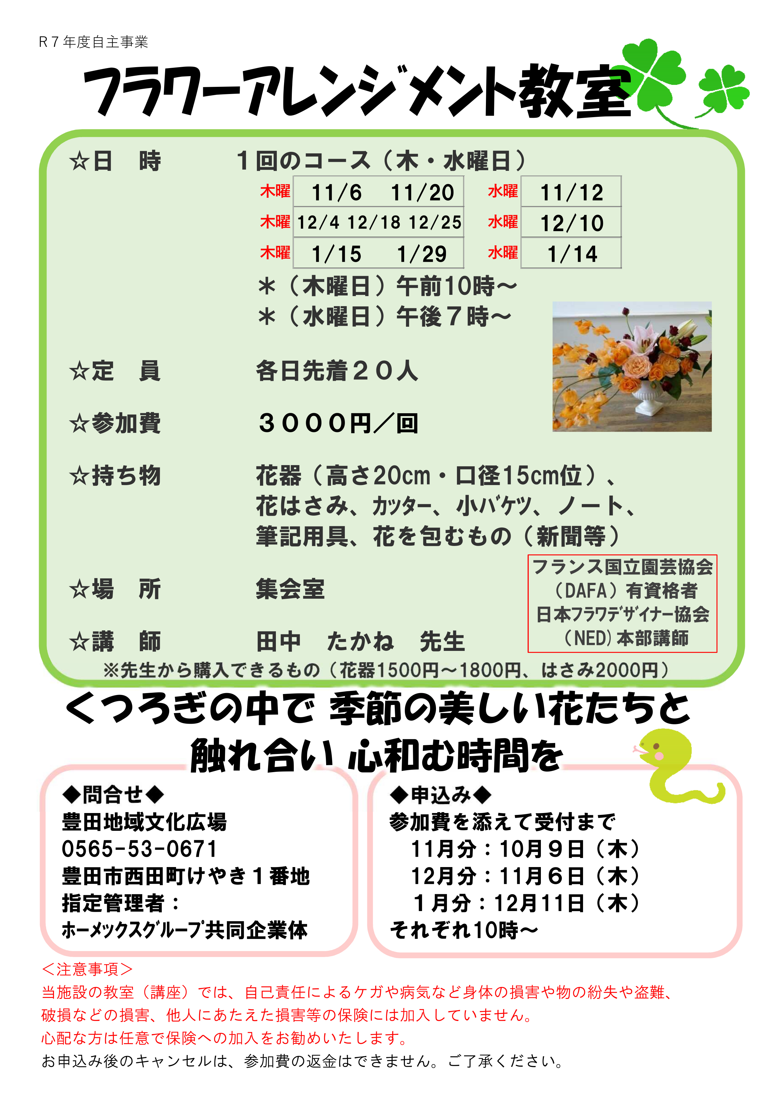 | 【フラワーアレンジメント教室】 | ||||||||||||||