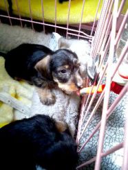 | 生後35日:兄弟ワンコたちと | みんなで一緒にドコみてるのぉ? |