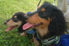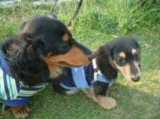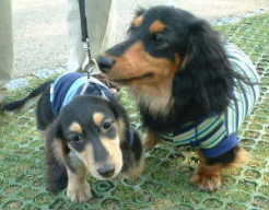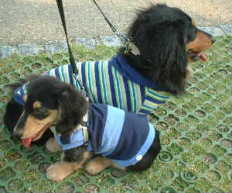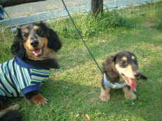 | なぜか逆方向を見てる二人 | ちかれた・・・抱っこぉ〜 |