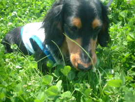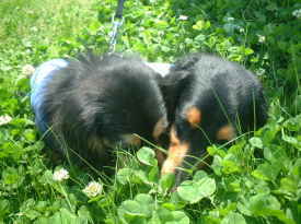 | クローバーをむさぼり食うクロワン。 | 食べつかれたフィ〜たんと食べつづけるアルちん |