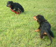 ボールとたわむれるワンコワンコ