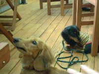 | あっちにおやつが待ってる・・・・ | うんしょ。ズルイぞ!アルちん。 |